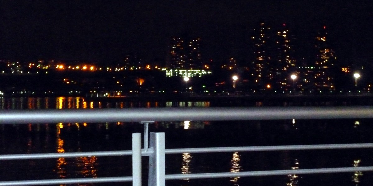 Hudson River at night.