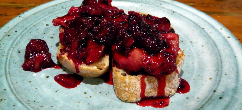 4. Most of the ingredients in this dish were local. Although the wine and vinegar I used were not local, they could be; however, the rhubarb jelly contains sugar, gelatin and lemons that are definitely exceptions to the local rule. For a 100% local option, you could try local strawberry rhubarb jam instead.