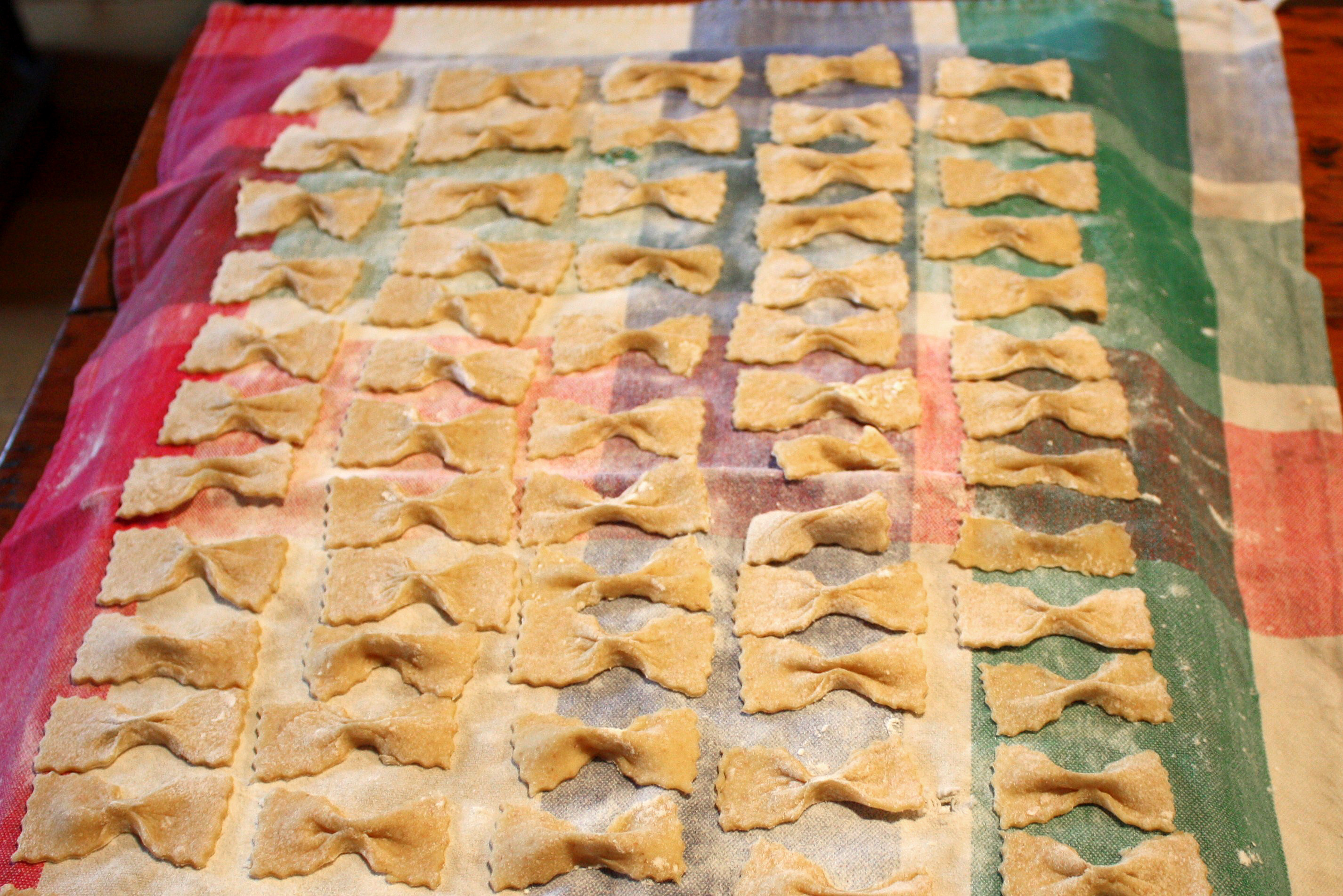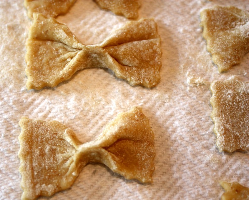 1. Making pasta is fun, and somehow I never thought of the bow-tie shape! I don’t have a pasta machine/feeder, so I started to learn how to make pocket-type pastas cut in squares. This would work too, just pinching off the squares. My father loves pasta, so even though I can’t eat it, I enjoy making it. I’m very new at it, so your tips and pictures are much appreciated.