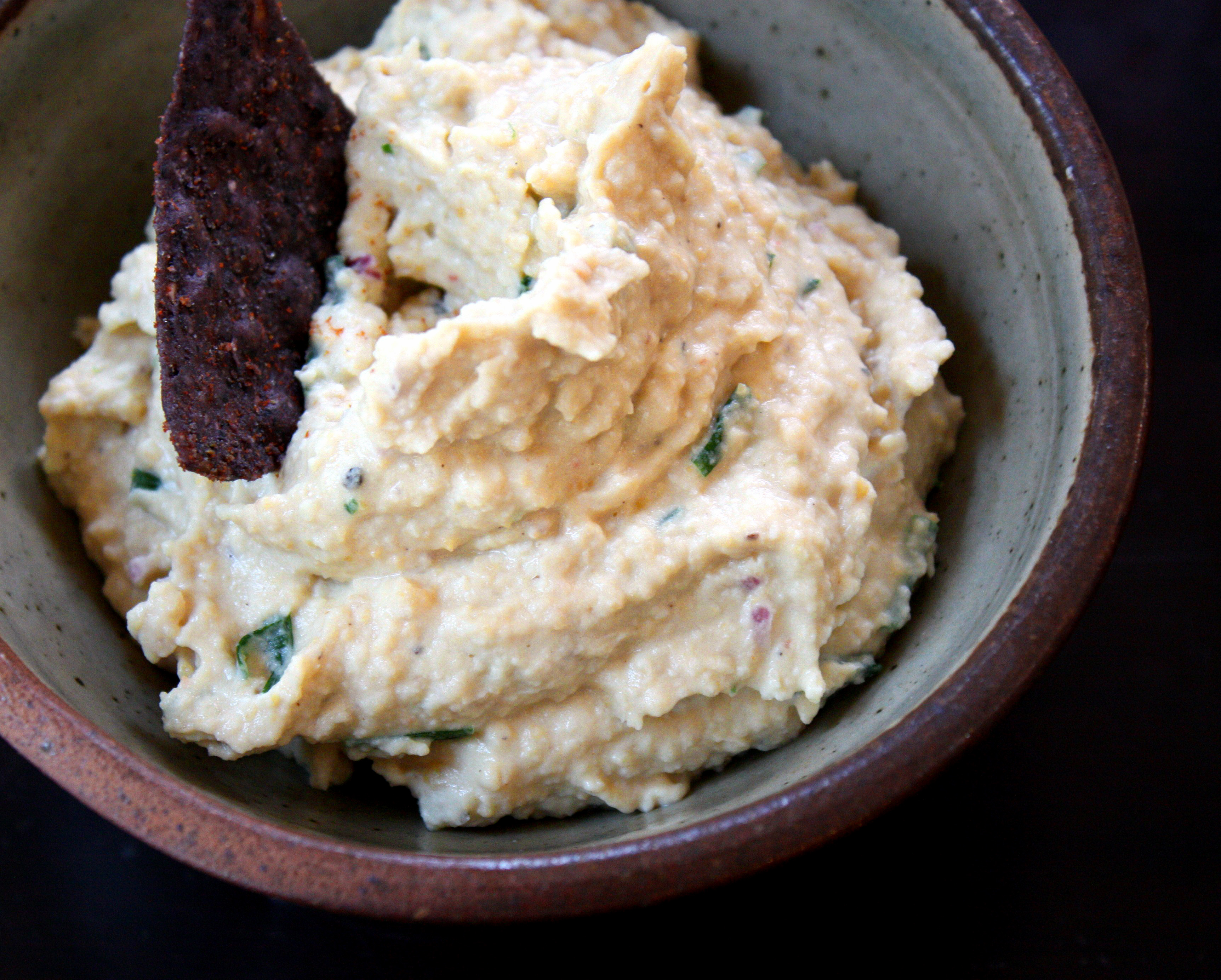 (My apologies for the picture. The hummus is a lovely, warm golden color, you know, like chickpeas. Not like mashed potatoes. Darn winter lack of daylight.)