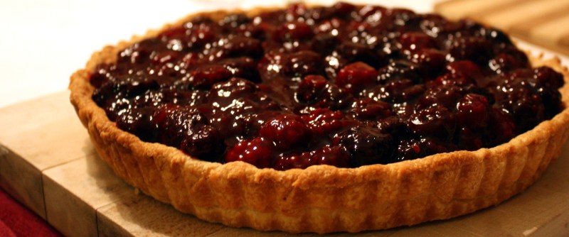 This tart is a riff on my standard Glazed Blackberry Tart recipe, with an added sweet cheese filling and 100% local ingredients for our Northeast Dark Days gathering (Dark Days post to follow- stay tuned!). This is a lovely tart to make in the winter, when fresh berries are still months away, yet you can relive the taste of summer with berries from the freezer. It can easily be made with any frozen berries you have on hand, and a variety of fillings, including the sweet ricotta, a lime or lemon curd, a berry chiffon, or no filling at all, give you plenty of options to tailor the recipe to your taste.