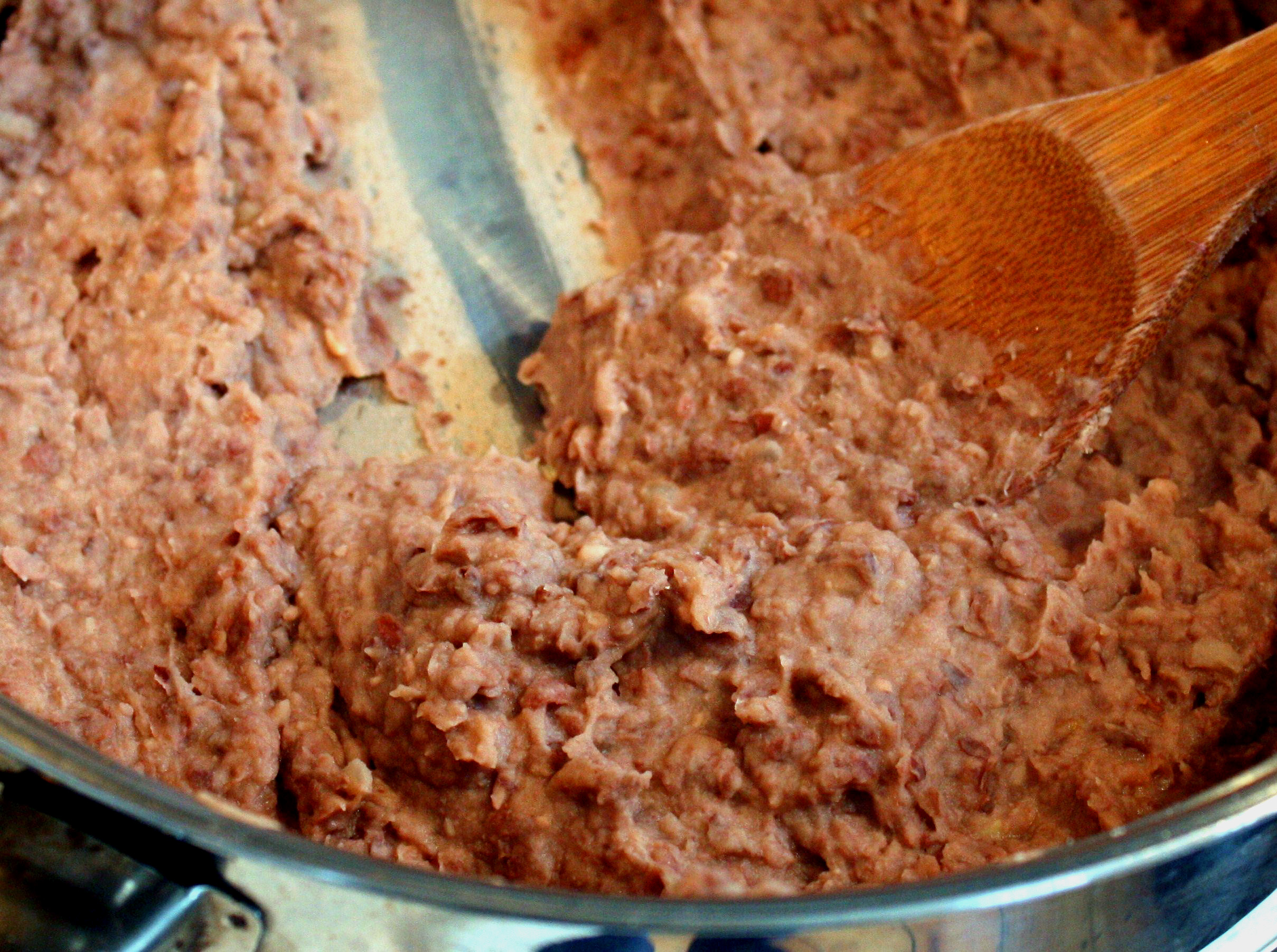 - Yes, you could make this with canned beans. But why bother? You can also buy canned refried beans. But I’m here to tell you that there is no relationship between the frijoles refritos that I made today and the brown, sludgy glop that comes in the can. Maybe you like the canned stuff (if so, I apologize for calling it glop; I have a strong affection for Cheetos, so who I am to judge?). But still – most things can stand a little improvement. Try this with homemade, home-cooked beans; you may just open up a whole new world of possibility.