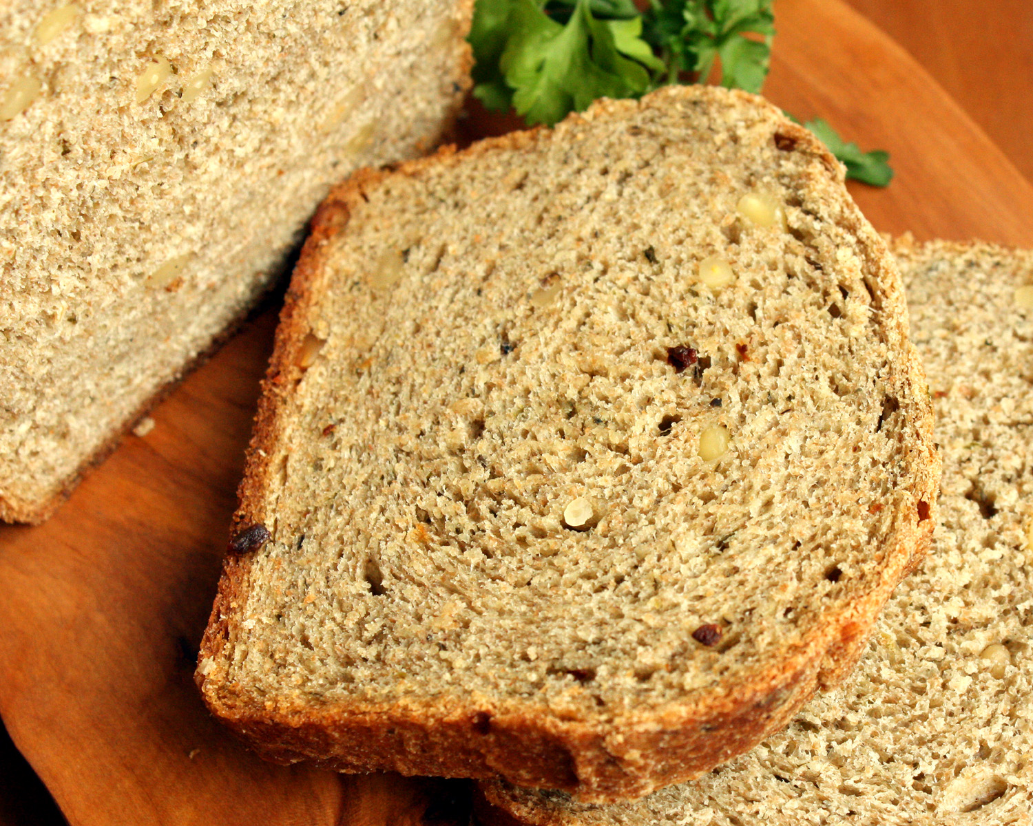 Adapted from Whole Wheat Basil Bread in Bread by Beth Hensperger (out of print)