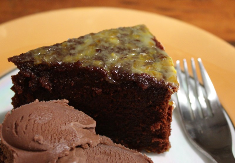 - Cool the cake in the pan, on a wire rack, for 10 – 20 minutes. Loosen the sides with a small metal spatula, if necessary, then invert onto wire rack; reinvert (using a plate) immediately and cool the cake on the rack. For the cleanest slice, allow the cake to cool completely before leveling the top with a long, serrated knife. (I was too impatient and sliced mine while still warm; the cake crumbled more, but it was delicious eaten warm, so…). Drizzle remaining 1/4 cup of liqueur over the top surface of the cake. Finish with a sifting of powdered sugar, a generous dollop of whipped cream, or Simple Orange Zest Glaze.