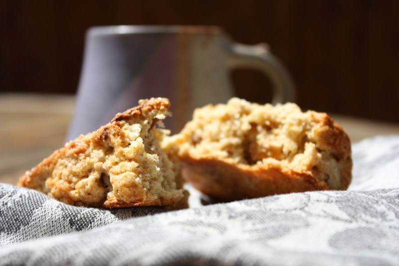 Taking a break from Laptop-Trauma Central to bring you this: another scone recipe.  This is one of Tai’s favorites, sweet, but not overly so, simply flavored with maple syrup and dried New York apples, with a nice crunch and hint of bitterness from the walnuts.  Perfect to warm the kitchen, and the soul, on this cold & dreary, technology-is-conspiring-to-kill-me, day.