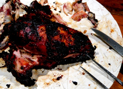 A couple of things you’ll probably notice as you peruse the recipes: one is that there is a lot of meat. It’s not that we don’t grill vegetables, we do pretty much every time we grill anything; it’s just that I never think that throwing asparagus, or bell peppers and onions, or summer squash, in a grill basket over the coals, maybe doused with a little olive oil & balsamic, really qualifies as a ‘recipe.’ Rest assured, there is a lot you can do with veggies on the grill, but hey – my blog’s only got one year of grillin’ under its belt. Give it time. Secondly, there is a lot of white meat. I’ve never been a vegetarian, but there have been years when I’m pretty close; other than the occasional bacon-with-brunch and maybe a once-a-month chicken sandwich, I was pretty non-meatarian. Now that I’ve been able to source humanely-raised, pasture-fed, delicious meat, I eat it a bit more often, but still; I haven’t eaten beef in about 25 years and I’ve never been a fan of game meats, and since I’m not the biggest fan of dark meat, lamb, veal, duck and lots of others sort of fall off the menu. Growing up in Gloucester, MA as I did, the irony of ironies is that I cannot stand seafood; any seafood (yes, even shrimp), in fact anything that comes from the ocean (vegetarian sushi still has seaweed, people – ewwww). So, no fish on our grill either. (For those of you are now feeling badly for Tai, doomed to a life of nothing-but-white-meat; don’t. He is perfectly free to bring home burgers, steaks, salmon or lobster; anything he wants, and I would even attempt to cook it for him. He just doesn’t; he says it would be ‘mean’ to make me cook something that I won’t eat. I’m not sure how he reconciles the pickles and mustard, however.…)