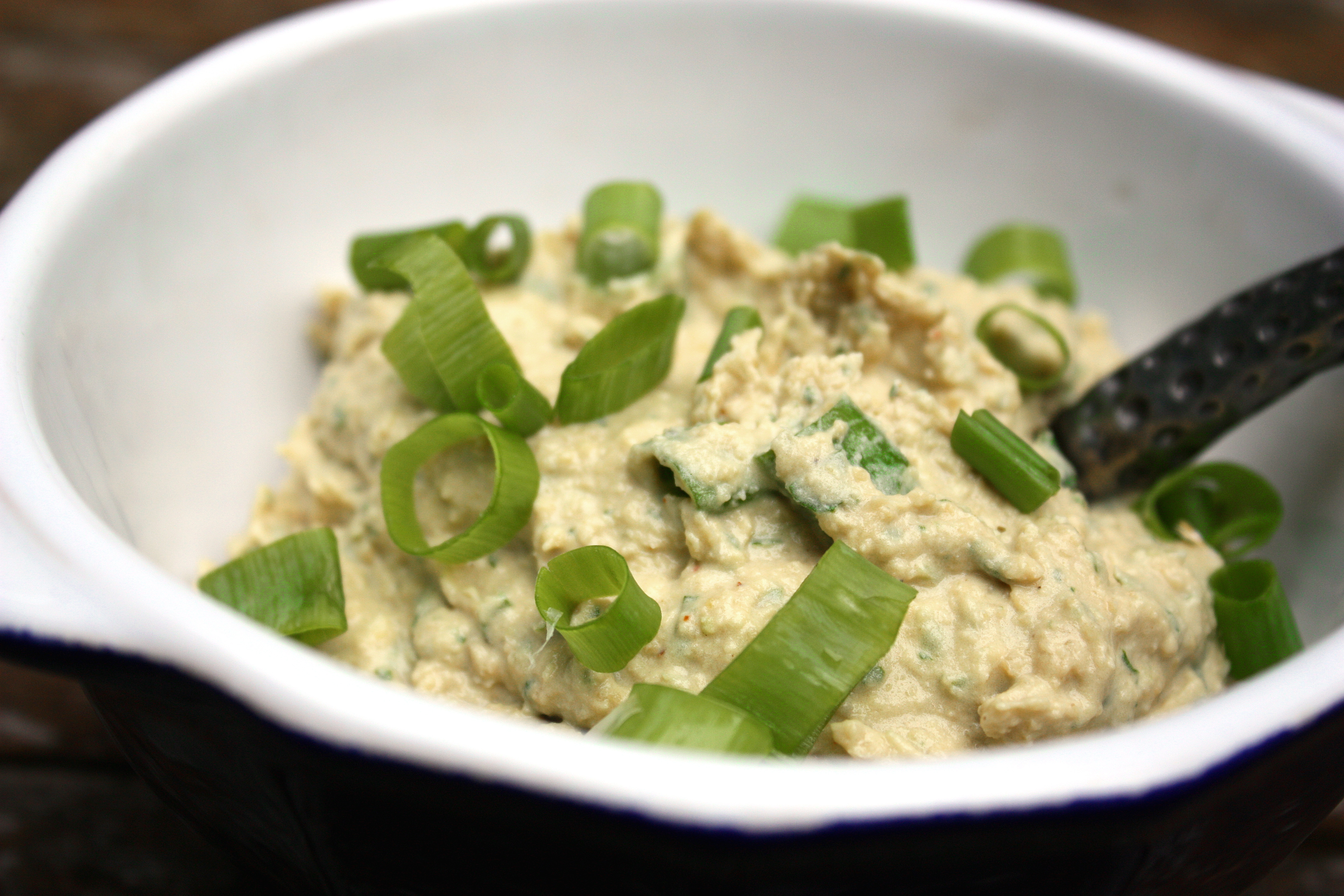 3. Transfer hummus to a medium bowl and mix in the last of the scallion with a spatula. Reserve a tablespoon or two for garnish. Serve at room temperature with pita bread, whole wheat tortillas, crackers, or crudites. Or sliced, chilled cucumbers – fabulous!