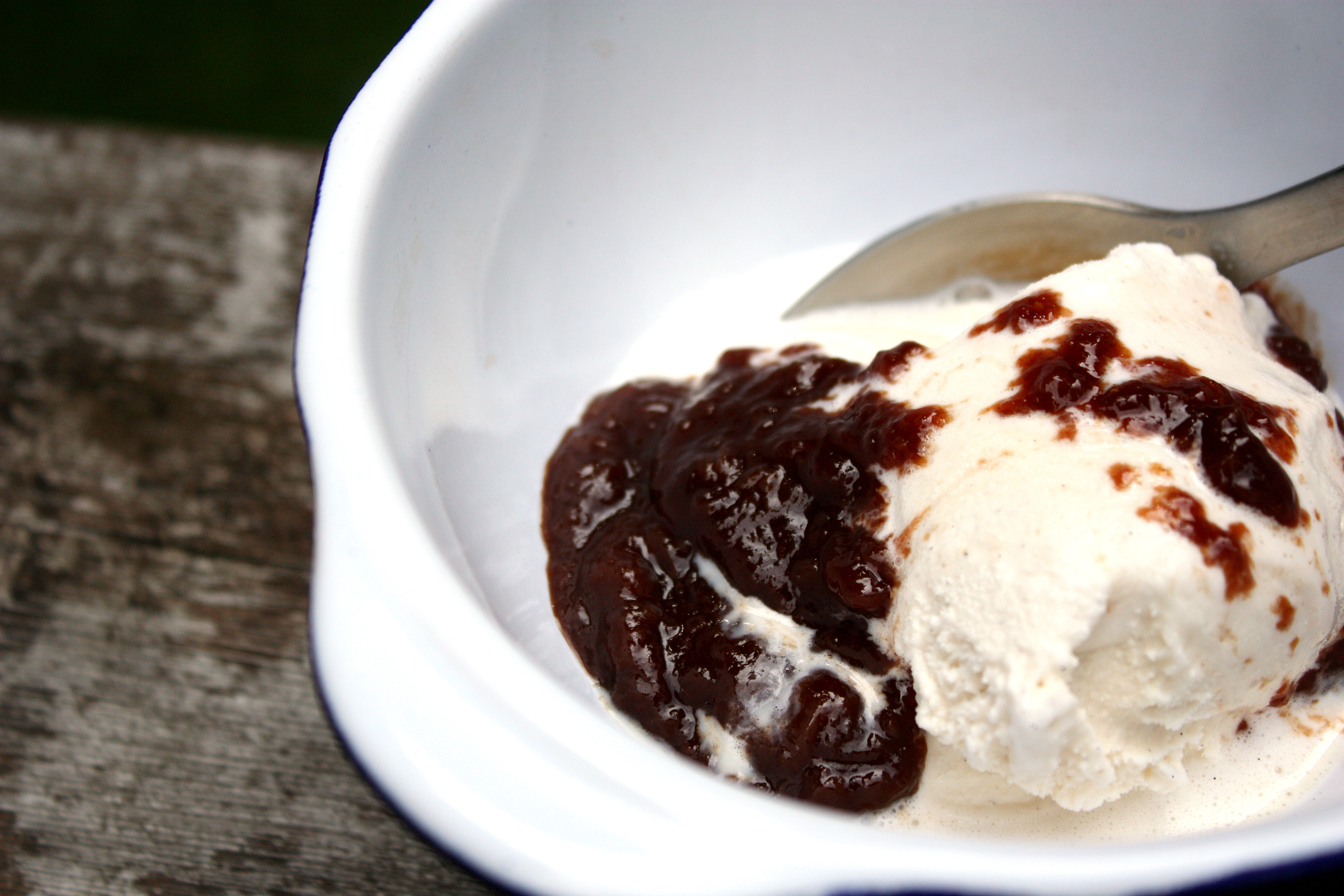 3. Despite the chocolaty appearance of this sauce, the taste is more peach than chocolate: I think a tablespoon or two of instant espresso powder might amp up the chocolate flavor. A teaspoon of vanilla extract might also be a nice addition.