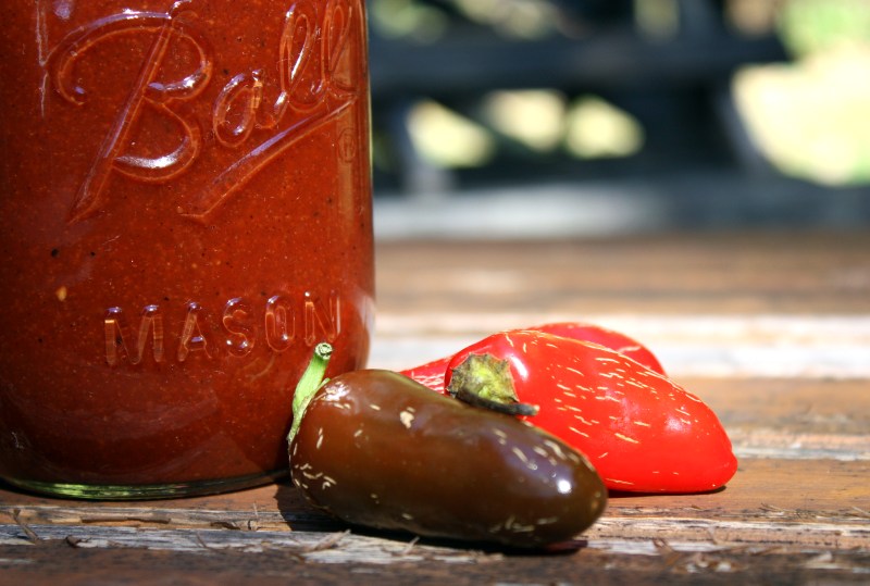 October’s Can Jam is chiles! I’m so excited to see the fabulous recipes that y’all come up with. I know you’re expecting some wacky jam or a crazy-too-hot salsa, but for this one, I tested out a new recipe, from my brand spankin’ new copy of Put ’em Up! (a birthday gift from my sweet hubs). I snagged some of the last fresh tomatoes of the season, from Madura Farms at my local farmer’s market, and had a pile of fresh chiles from my CSA: charred chile barbecue sauce it is!