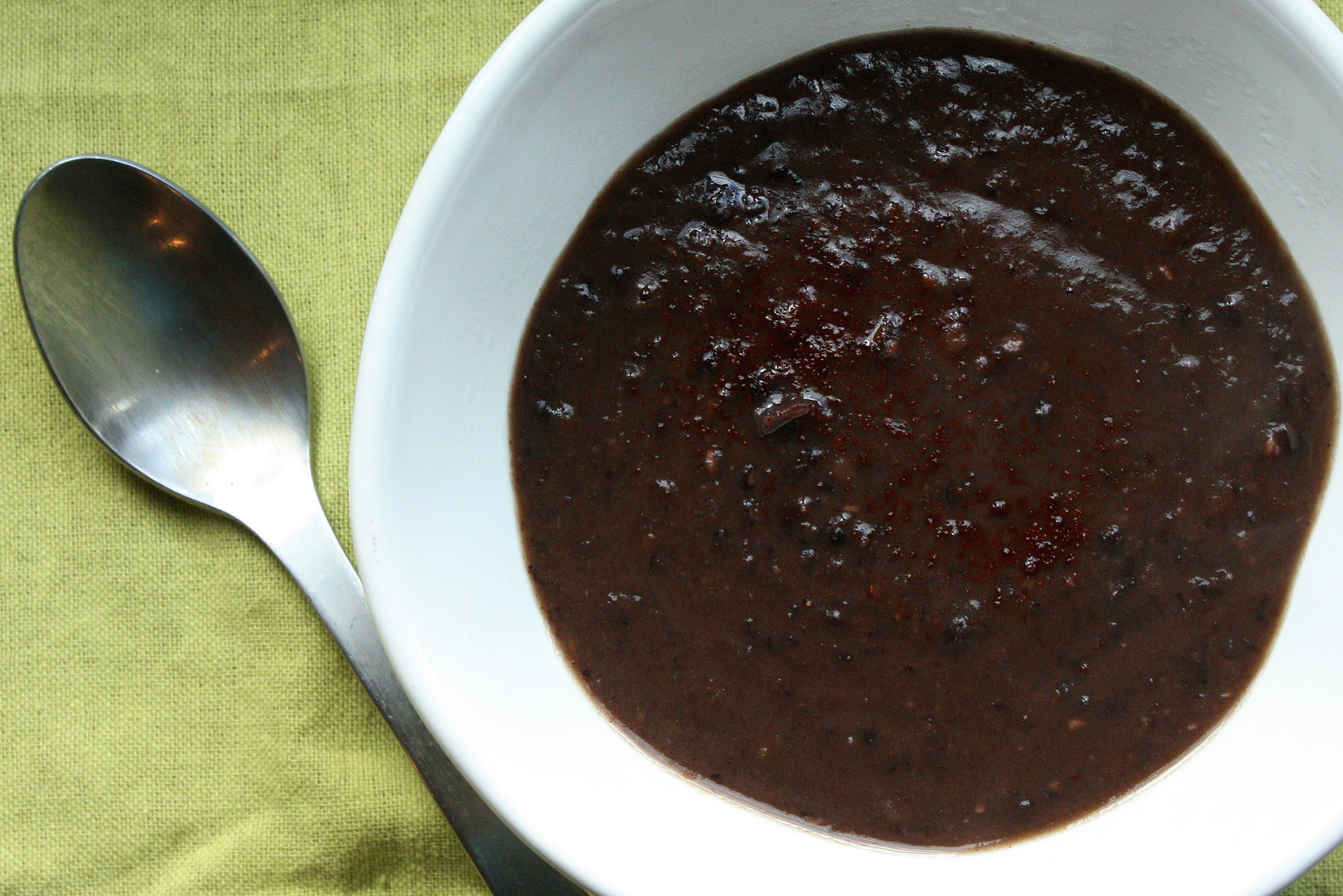 We’re having truly New England weather today: daylight savings is barely 24 hours old, yet I woke up to dim, grey skies, a blustery Northeast wind (I keep expecting to see a witch fly by on a bicycle) and big, fat snowflakes. Followed rapidly by sleet. Or hail. Or freezing rain. Or all of the above (or my favorite weather euphemism “wintry mix.”). There is really only one thing to do when November is still in single digits, yet you wake up to 34 degrees and snowflakes: black bean soup.