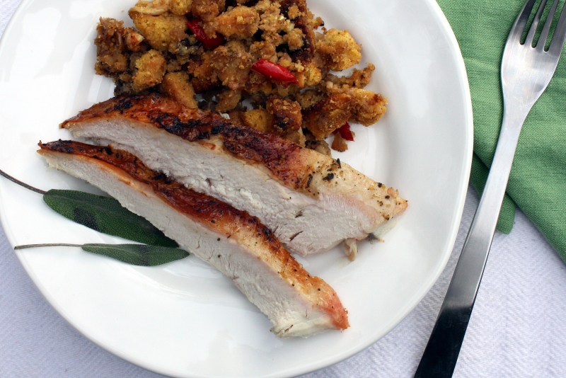 What do you cook for Christmas Day? Do you have a leisurely day of cranberry nut bread and eggnog, like we do? Do you whip up a full breakfast of eggs, bacon and pancakes? Or do you go all out with a traditional dinner, roasted turkey or goose, plum pudding and the works? Just in case roasted turkey is on your Christmas dinner agenda, I thought I would share my Thanksgiving turkey recipe with you: a simple dry-brine with sage, bay and orange zest that perfumed the meat delicately without the hassle (and reported spongy texture) of a wet brine.