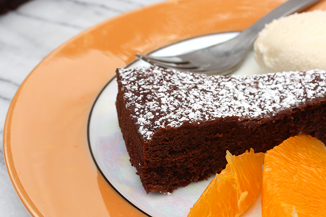 Indulge. That’s right: because eating should be a pleasure, and while I have enough kale and pumpkin squirreled away to last me until strawberry season, the bloom on the squash blossom has definitely faded. Most of what I eat on a day to day basis is still sourced locally: I have a good supply of preserves and put-ups left from last year, I’ve still got a healthy store of vegetables and berries in the chest freezer and I’m lucky enough to have a year-round farmer’s market for meat, cheese, milk, butter and winter produce. But the tastebuds deserve a treat at this time of year, and this cake is nothing if not indulgent.