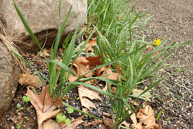 Garlic chives show up in the Spring, in yards, forests and farmer’s markets.