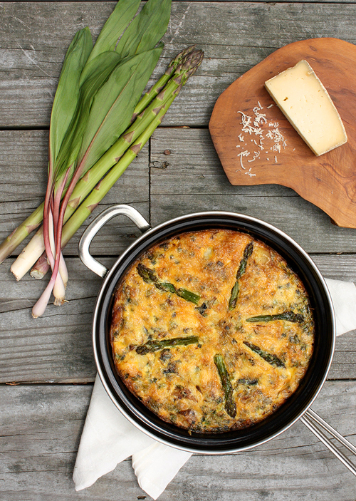 1. This is a very light, Springy frittata; while I normally make them with whole eggs, I like this one with half egg whites. It lightens up the flavor and allows the ramp and asparagus to shine. And you can always make curd with the extra yolks!