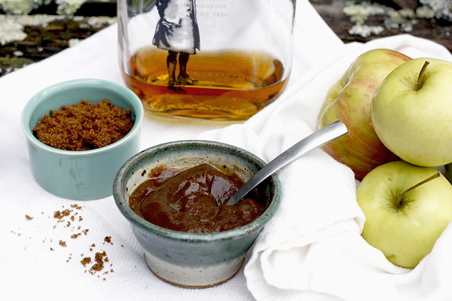And if there is anything I love more than apple butter and booze it is free apples! Thanks go to Julia of What Julia Ate for sending down some apples from her ‘hood, and to Kate of Hip Girl’s Guide to Homemaking for apple delivery services! Thanks so much, girlz: this apple butter is even more special because of you.