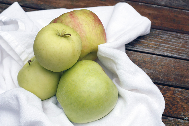 - Wash & stem apples. Quarter and add to a large, wide stockpot (peels, cores & all) with 1 cup of cider vinegar. Add filtered water to just cover apples. Bring to a boil over high heat; cover pot, reduce heat to low and simmer until apples are soft and just beginning to break down, about 30 minutes. Strain through a sieve, lined with dampened cheesecloth, to collect juice. Reserve juice for this. Or this. Or maybe this. Push cooked apples through a food mill, or a fine sieve, to remove seeds & skins. At this point, you can store the apple pulp overnight and continue with the recipe the next day, if you like.