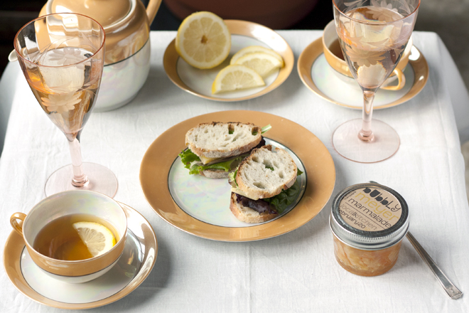This, however, is not the Dowager Countess’ marmalade: “Champagne? In marmalade? Good heavens. And what is this fruit? An orange? A lemon? Why doesn’t it make up its mind?” Oh no, give Violet good old British marmalade (made with Spanish Seville oranges, naturally) every time. No, this one strikes me as right up Lady Mary’s alley: “Convention be damned! If I want to make passionate love to a beautiful Turkish gentleman drink my bubbly and eat it too, what you have to say on the subject certainly won’t stop me.” But make no mistake: this marmalade is Downton-worthy. Sweet, but not overly so, perfectly set, lemony and bright, and just ever so bubbly. Mrs. Patmore would be appalled but Sybil would remind us that the world is changing: and any world that includes Bubbly Meyer Marmalade is one worth living in.