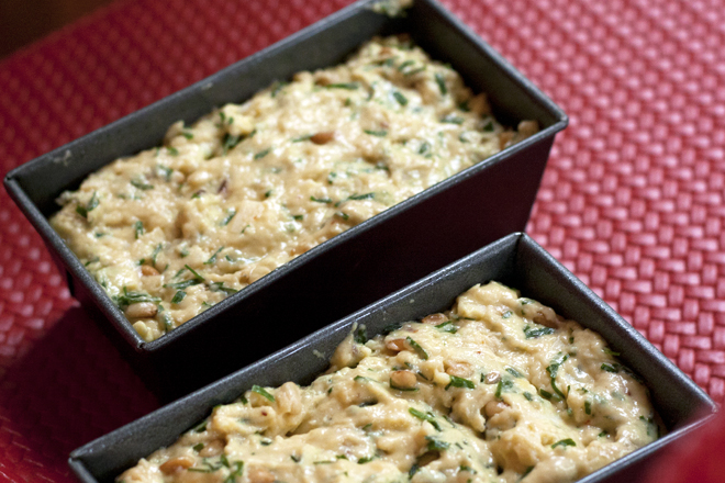 - Spoon the thick batter into pans (in the small loaf pans, it came within 1/4-inch of the top). Tap the pans on the counter to settle batter and smooth the top. Bake in the preheated oven until golden brown and a cake tester inserted into the center comes out clean, about 35 – 45 minutes. Allow to cool on a rack, de-pan, and serve.