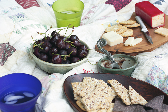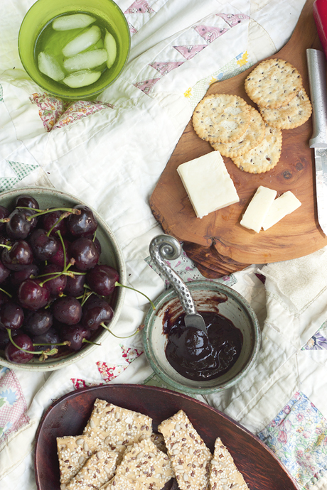 The resulting butter is tangy, smooth, intensely cherry-flavored, with a hint of bitterness from the pits that saves it from that cloying Cherry-Vicks flavor. With just over a cup of sugar to 6 pounds of cherries, this is a very low sugar option, and the maple syrup adds just a whisper of maple flavor to the final butter. Spread an old quilt in the shade and enjoy this butter on crackers & cheese, with plenty of ice-cold drinks on hand. Stay cool!