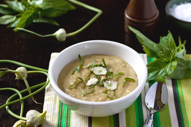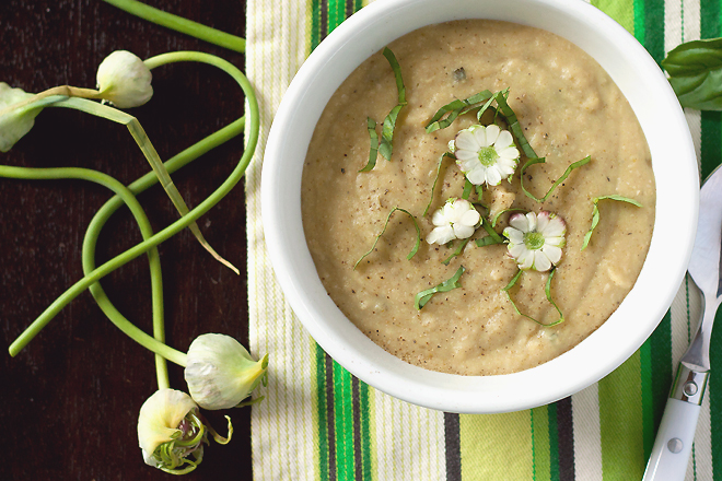 I’m in love with soup and this one sounds like a winner! I wouldn’t have thought to use scapes like this.
