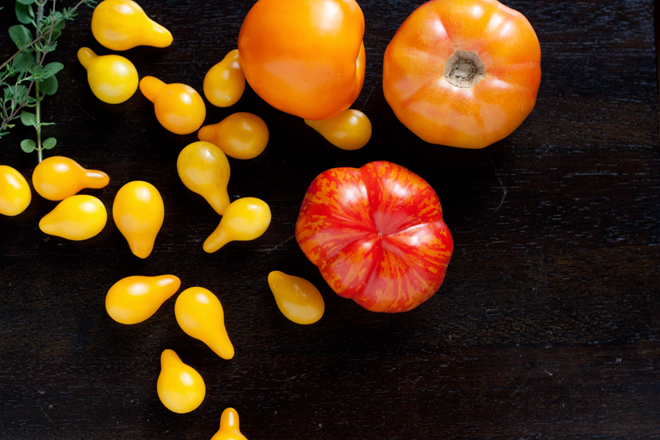 • 2 or 3 meaty heirloom tomatoes, thickly sliced