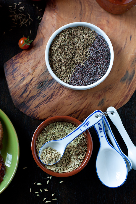 The pan-roast of the whole spices in olive oil smells so incredible that I want to find ways to use this spice mix in other recipes; or, if I had the freezer space, I would freeze a bunch of tomatoes now and make small batches of this chutney all winter long, simply so I can smell it simmering on the stove all day long. Or, you know: I could just pop open another jar.