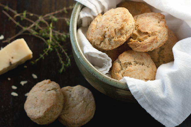 But it got me to thinking; just in case you, like me, are not a Persian oil baron who can afford to toss down four Jacksons for a couple dozen biscuits, you’re in luck, because I’m here to tell you a little secret:  you can make them yourself. I know what you’re thinking, “She’s crazy! Surely if biscuits are worth $72, there is no way I could simply manufacture them in my very own kitchen!” I know: it sounds wacky. But it’s true: a little flour, a little butter, some cheese & herbs to fancy them up, and in about 30 minutes, you too can have your very own $72 biscuits for the Thanksgiving table.