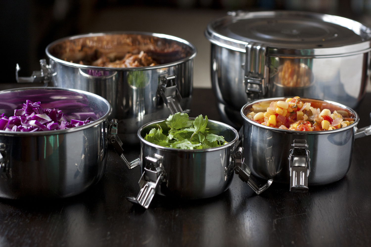 True confessions: When MightyNest first contacted me about teaming up for a giveaway of stainless steel food storage containers, my first response was, “Thanks, but no thanks.” Don’t get me wrong: it’s not that I don’t like stainless steel. All the many reasons that glass is superior to plastic for storing food in your kitchen hold true for stainless steel: stainless is inert, dioxin, phthalate, and BPA-free, durable, reusable and overall vastly more environmentally-friendly than plastic. In addition, stainless steel is non-breakable, and hence more durable than glass or ceramic, more lightweight and portable than glass, and safe for use in the oven, on the stovetop, or even over a campfire.