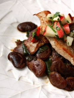 Christmas Limas with Seared Pork Cutlets and Fresh Apple Relish