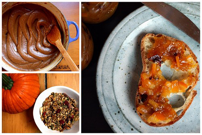 Check out recipes in the preserves index for: apples, pears, quince, plums, Concord grapes, cranberries, pumpkin & winter squash, leafy greens, bell peppers and chile peppers.