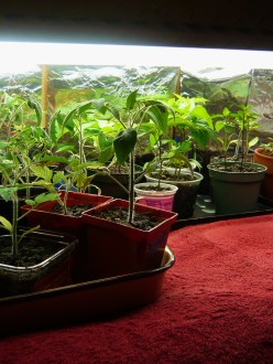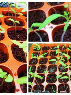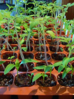 There’s a whole lotta transplantin’ goin’ on!  Three weeks in and the tomato seedlings need transplanting.  I’ve read to transplant when there are two “true” leaves (the leaves that come out after the first set of leaves, the cotelydon), and  when there are four true leaves.  Some of my tomato plants had two, some had four; but all were pretty leggy, due to spending the first day or two after germaintion without much light, and so were blocking the shorter seedlings […]